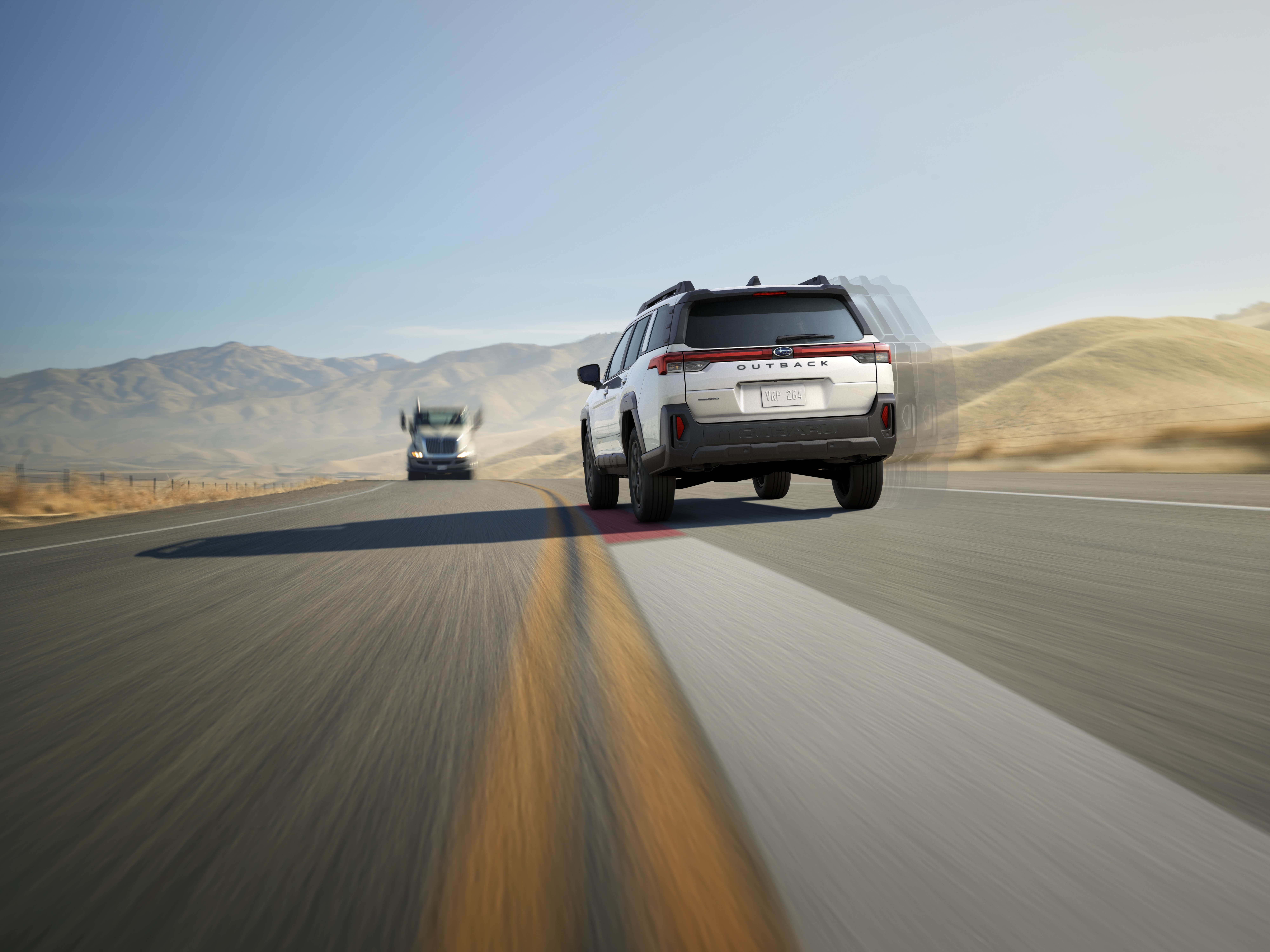 2026 Subaru Outback driving confidently on open roads with standard Subaru Symmetrical All‑Wheel Drive.