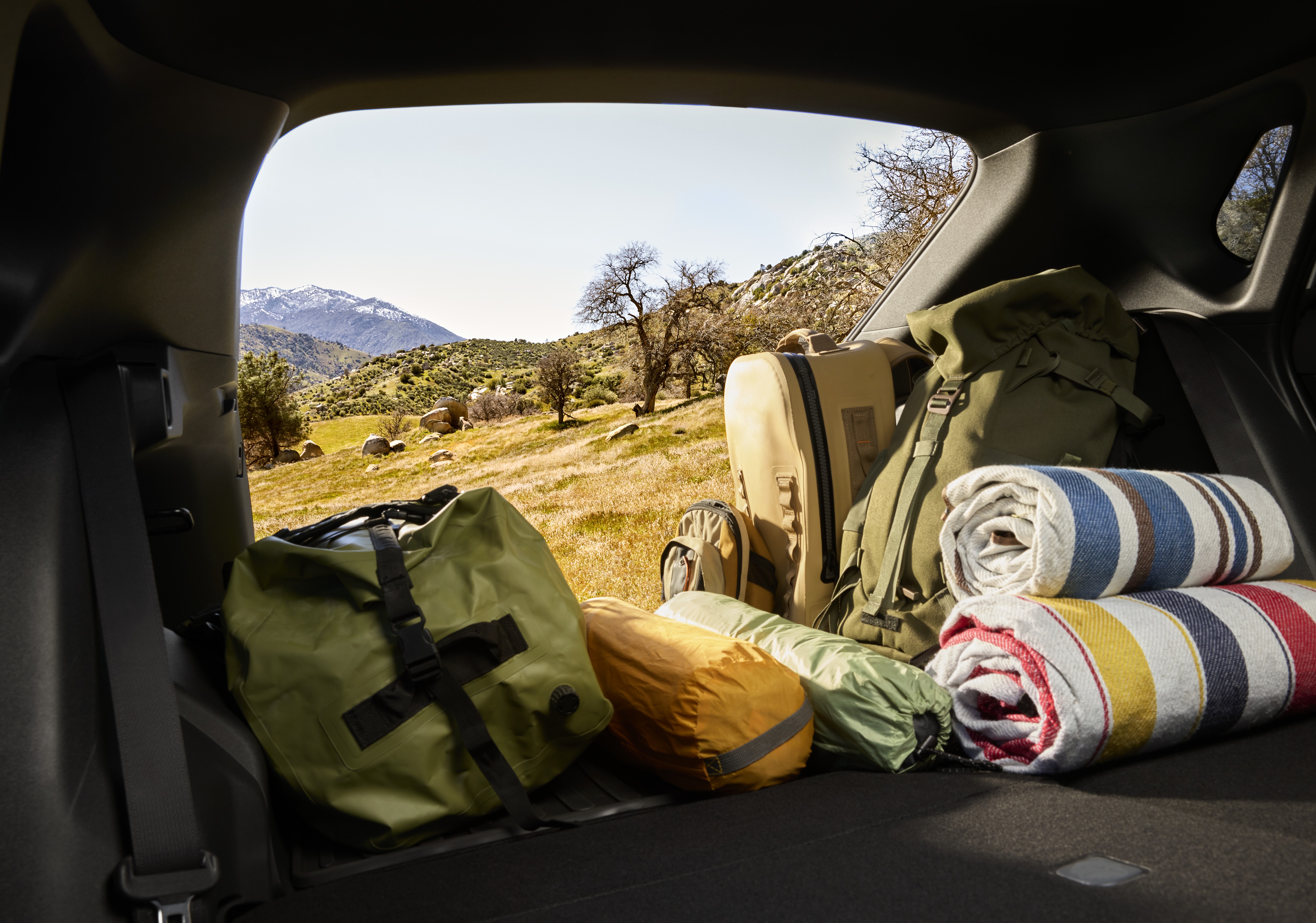 Adventure‑ready cargo space in the 2026 Subaru Solterra, packed with camping gear for an all‑electric weekend getaway.